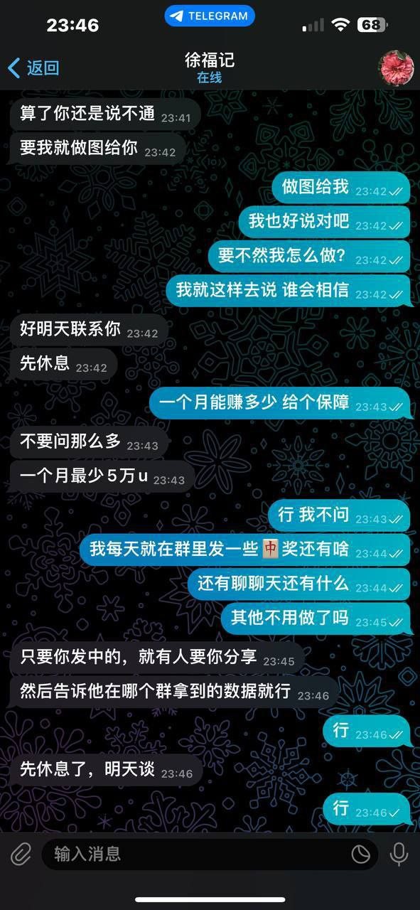 骗子 “猪刚” 假借六合彩交流群成员身份,每天开奖后在群里发布号码信息。当有人询问内幕数据时,他以 “分享数据会被罚款” 为由拒绝透露,并推荐加入其 “内部频道”。实际上,该频道全是水军操控,根本没有真实内幕。
